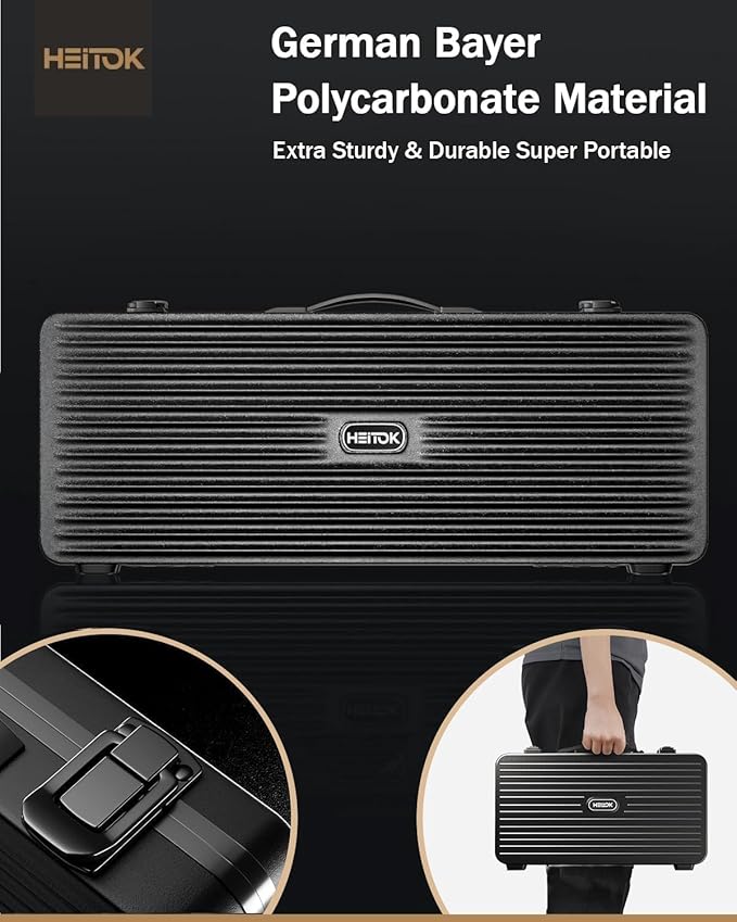 Confidence in Transit: Forget flimsy cases. This set is housed in a robust German Bayer Polycarbonate suitcase, featuring a solid handle and a trusty zinc alloy lock for reliable transport and stylish, secure storage.