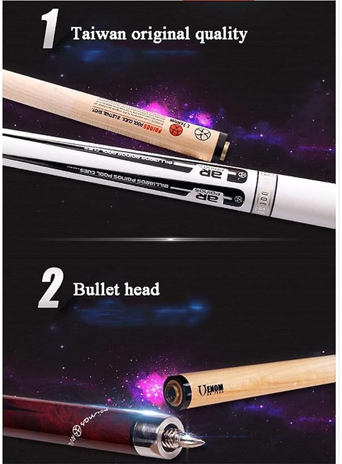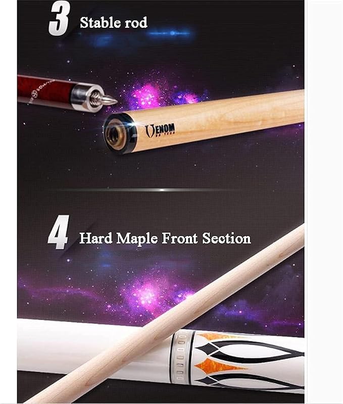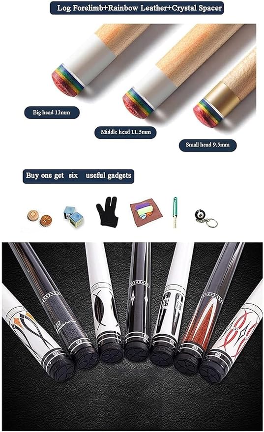 Designed for Your Game: Customize your control by choosing the ideal tip size from 9.5mm, 11.5mm, or 13mm, offering the flexibility needed for different playing styles. The 1/2 split cue structure provides maximum convenience, breaking down easily for compact storage and effortless transport to any club or billiard hall.