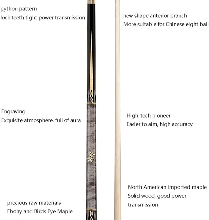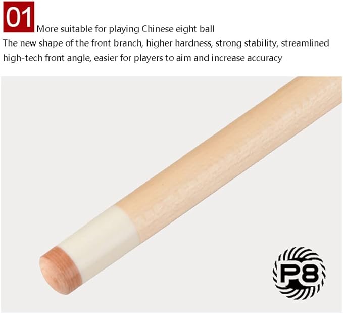 Elevate your game with a cue specifically engineered for Chinese-style eight-ball. Its new front shape and streamlined, high-tech angle deliver superior stability and hardness, making aiming easier and guaranteeing an increase in shot accuracy.