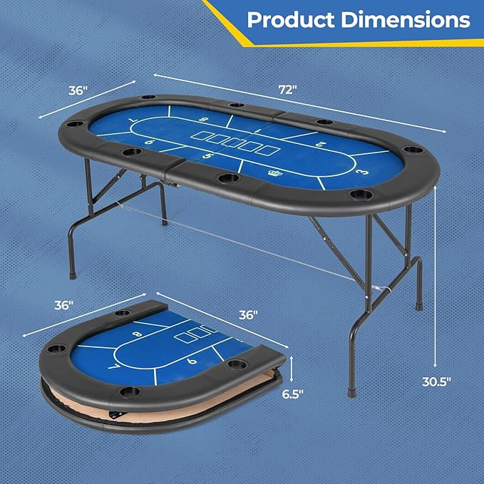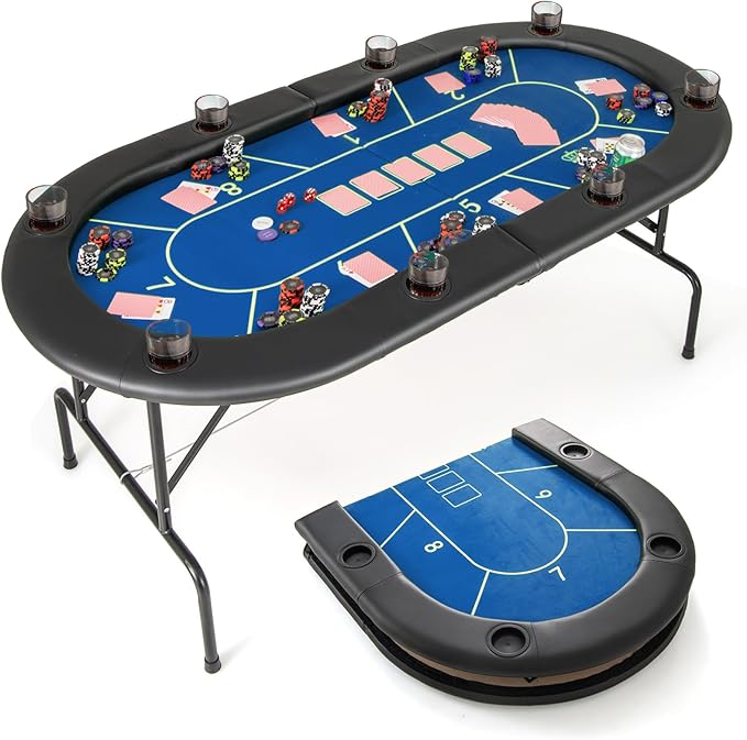 Giantex 72″ Poker Table Foldable, 8 Player Folding Card Board Game Table w/ 8 Cup Holders, Casino-Grade Felt Surface, Portable Oval Texas Holdem Poker Tables for Blackjack Casino, No Assembly Required